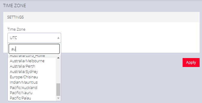 Select the Console Manager’s time-zone from the Time Zone drop-down list. A filter is provided to make selection easier.