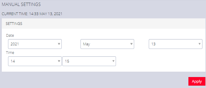 Click CONFIGURE > DATE & TIME > Manual Settings.