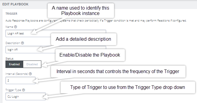 | CLI Login | Triggers upon Login or Logout events. Select either or both. |