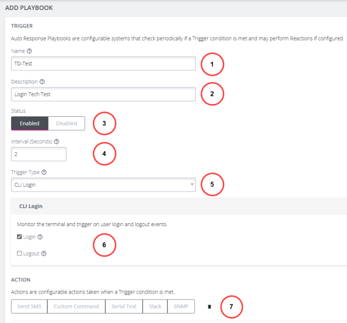 | 7 | Action | Follow-up action to be taken when a Playbook is triggered. |