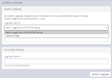 Select the Upgrade Method, either Fetch image from HTTP/HTTPS Server or Upload Image.