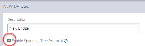 CONFIGURE > NETWORK CONNECTIONS > Network Interfaces > Select the target interface > New Bridge page