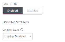 To Enable Raw TCP, click the Enabled button then click Apply at the bottom of the page. A confirmation message is flagged when Raw TCP is successfully enabled.