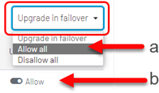 If Upgrade in Failover is selected, it is selected either in bulk, by dropdown selection (a), or, individually by a toggle switch beside each table row (b):