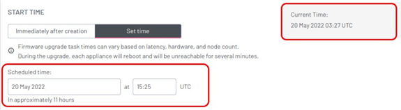 Select the Start time as either Immediately after creation for immediate start, or, Set time. For Set Time , enter the Scheduled time Date and Time.