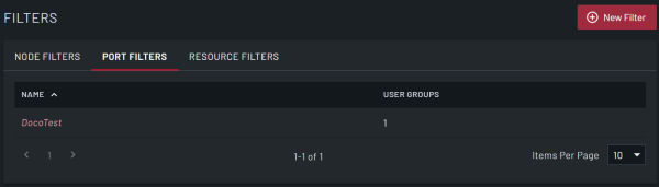 The following example image shows the PORT FILTERS tab, but the NODE FILTERS and RESOURCE FILTERS tabs are the same.