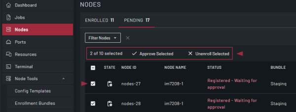 To take action on multiple items at the same time, select the check boxes on the left of the rows. The available actions are displayed above the top row of the grids. If you select the check box in the grid header, all check boxes in the grid are selected.