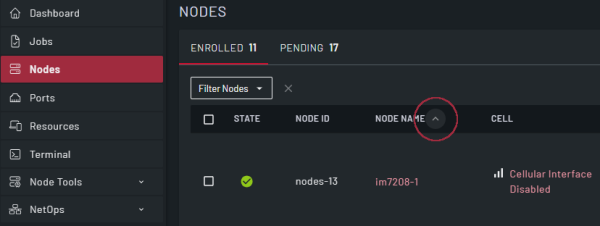 Some columns support sorting the values in the column in ascending or descending order. To show the sort control, hover over the column name and then click the control to modify the column sort order.