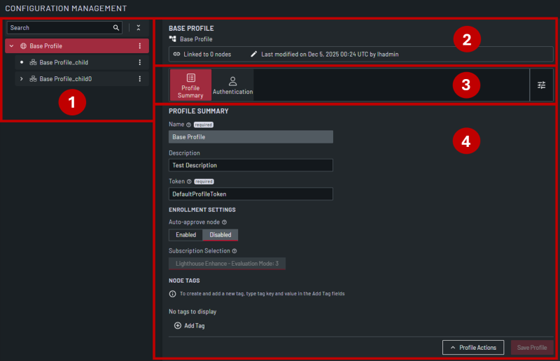 | 1 | Hierarchy View | This section displays a hierarchy view of the configured profiles. |