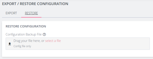 CONFIGURE > SYSTEM > Export / Restore Configuration