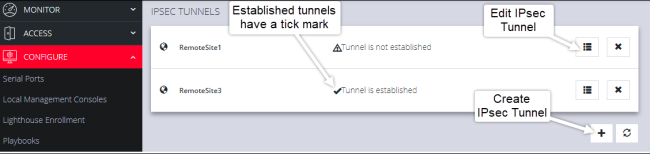 Click CONFIGURE > NETWORK CONNECTIONS > IPsec Tunnels.