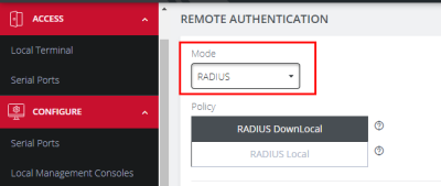 Under CONFIGURE > User Management > Remote Authentication, select RADIUS from the Mode drop-down menu.