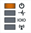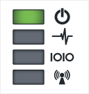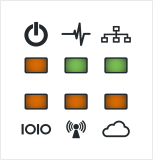 Note: OM1200 and CM devices have displays with four LEDs. The OM2200 devices have displays wth six LEDs that include Lighthouse (Cloud) and Network status. See Device Status LEDs for LED definitions.