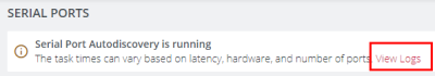 At the top-right of the UI window, click on the Log File red text to retrieve the port discovery logs or by clicking on the View Logs red text in the autodiscovery running banner.