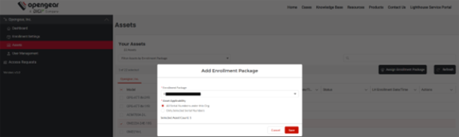 The assets tab shows all available assets (LSP enabled or not). You can assign enrollment packages to specific assets.